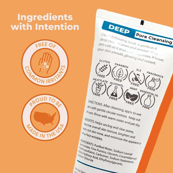 - WHAT WE LEAVE OUT: Some scrubs use abrasive exfoliants like nuts, salt, and crushed up fruit pits which can cause micro-tears on the surface of the skin which gradually breaks down the skin's protective layer making it more prone to dryness and irritation. On top of that, skin care often contain harsh ingredients such as dyes, parabens, phthalates, gluten, plant extracts, salicylates, and fragrance that can further strip skin of its vital oils, and lead to irritation.