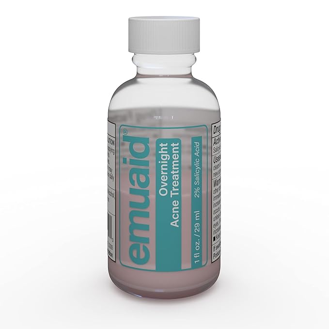 EMUAID Overnight Acne Treatment, Gentle Fast-Acting Solution with Salicylic Acid for Adults and Teens, Clears Stubborn Pimples, Cystic Acne, Blackheads, Rosacea, and Hormonal Breakouts, 1oz