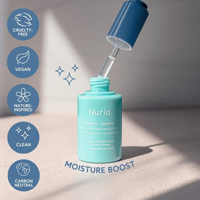 Nuria - Hydrate Moisture Replenishing Serum, Antioxidant Serum for All Skin Types, Skin Care Serum with Everlasting Flower Extract and Squalane Oil for Face, 25mL/0.8 fl oz