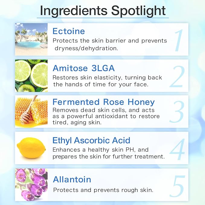 - Enhances skin elasticity with reduced wrinkle visibility.