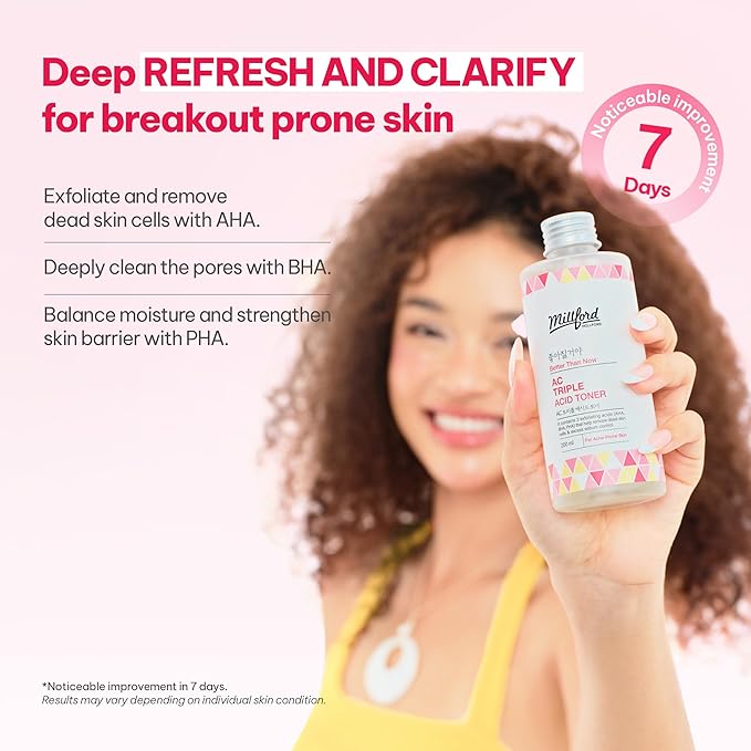 AC Triple Acid Toner 6.76 oz/200 ml – AHA/BHA/PHA Exfoliating & Hydrating Facial Toner with Salicylic Acid & Glycolic Acid for Oily Skin, Pore Cleaning, Acne & Sebum Control, Korean Skincare