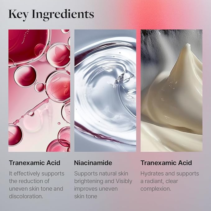 - Formulated with Tranexamic Acid, Magnesium Ascorbyl Phosphate, and Ascorbic Acid, this cream helps support skin health and improve skin texture for a balanced and refreshed look.
