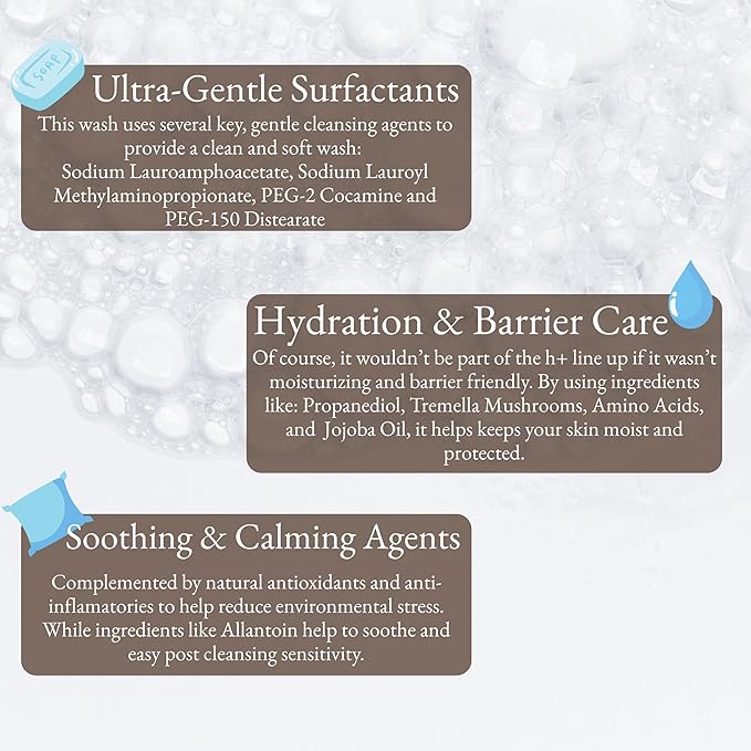 - Daily Use Cleanser – Ideal for morning and night, and pairs well with the h+ Moisture Lotion and Cream for a simple but complete routine.